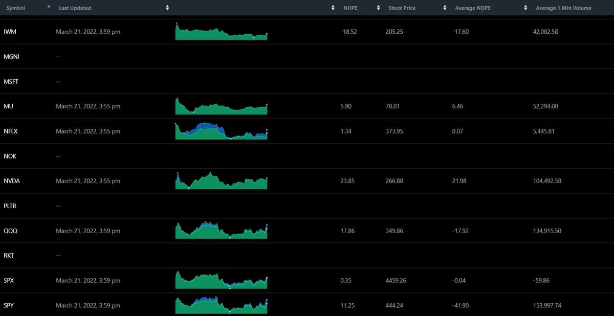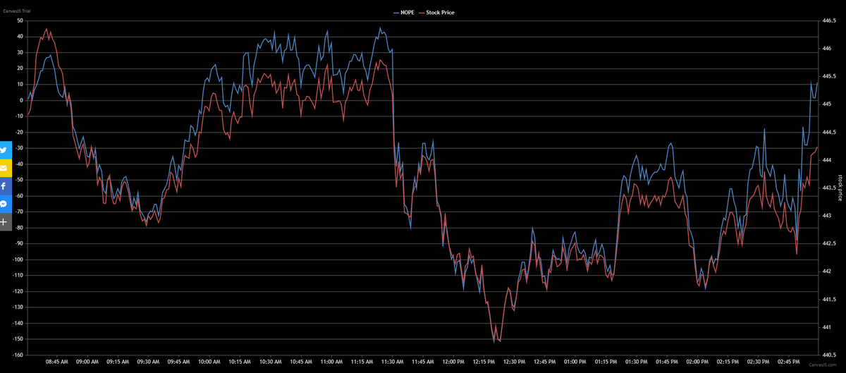NOPE is the Net Options Pricing Effect, which tracks the intraday net delta of any ticker, but most research has been done on indexes. It functions under 2 assumptions: